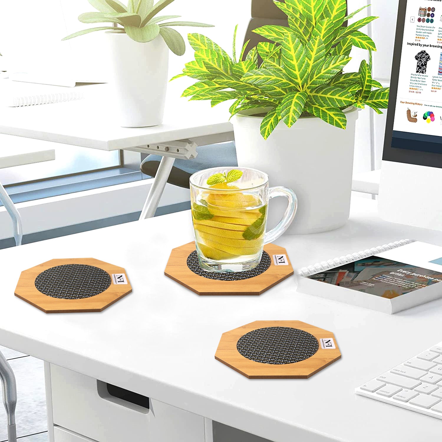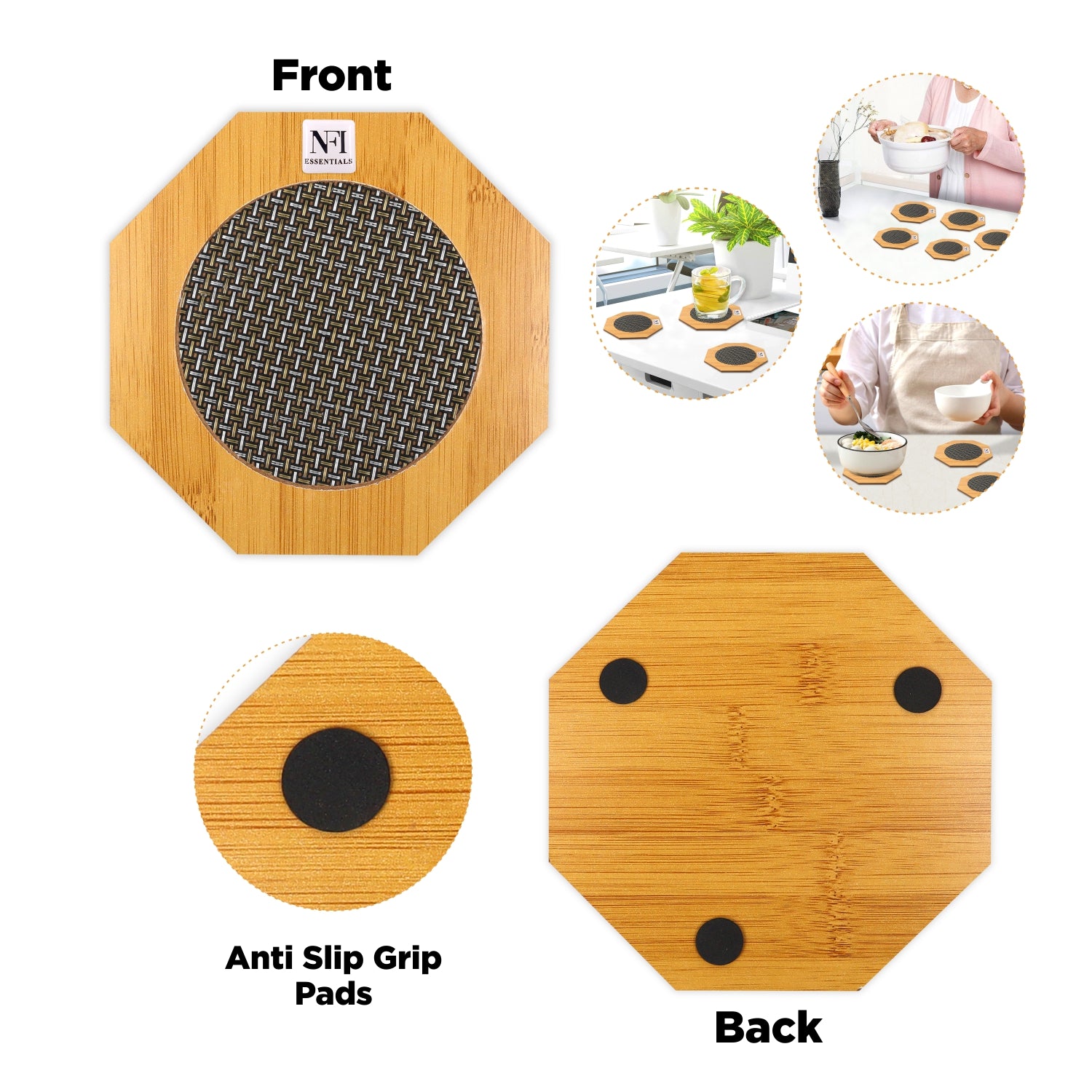 NFI essentials Pack of 4 Wooden Octagon Shape Trivet Mat