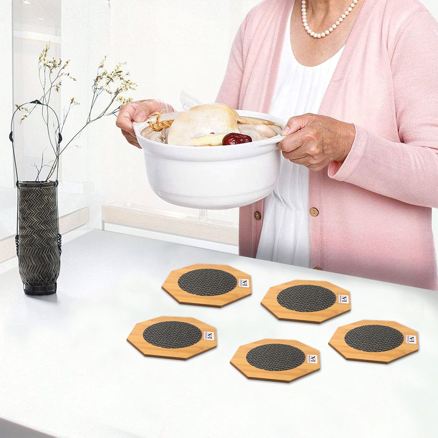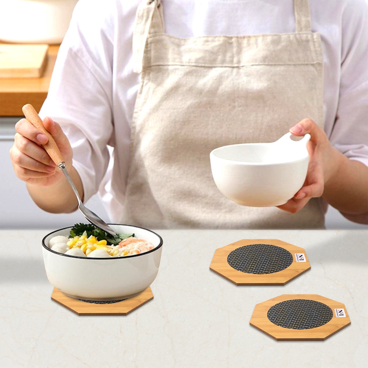 This Octagon Shape Bamboo wood Placemat Set made from high quality wood. Home & Kitchen Dining Pan Pot Holder for Soup Bowl, Dishes, Plates, Pots, Pans, Serveware, Comfortable for grab hot pots and pans, Also protects table from scratches marks. Excellent choice for your dining table. Easy to clean & Store. a unique gift idea too.