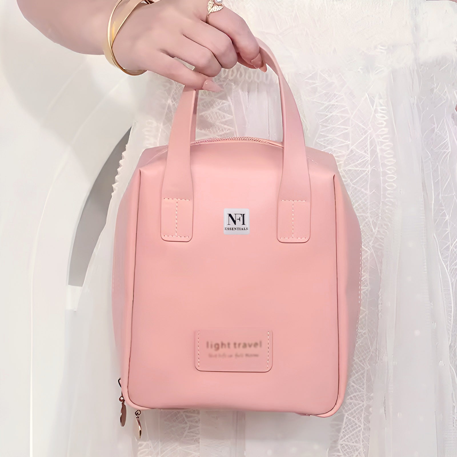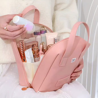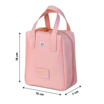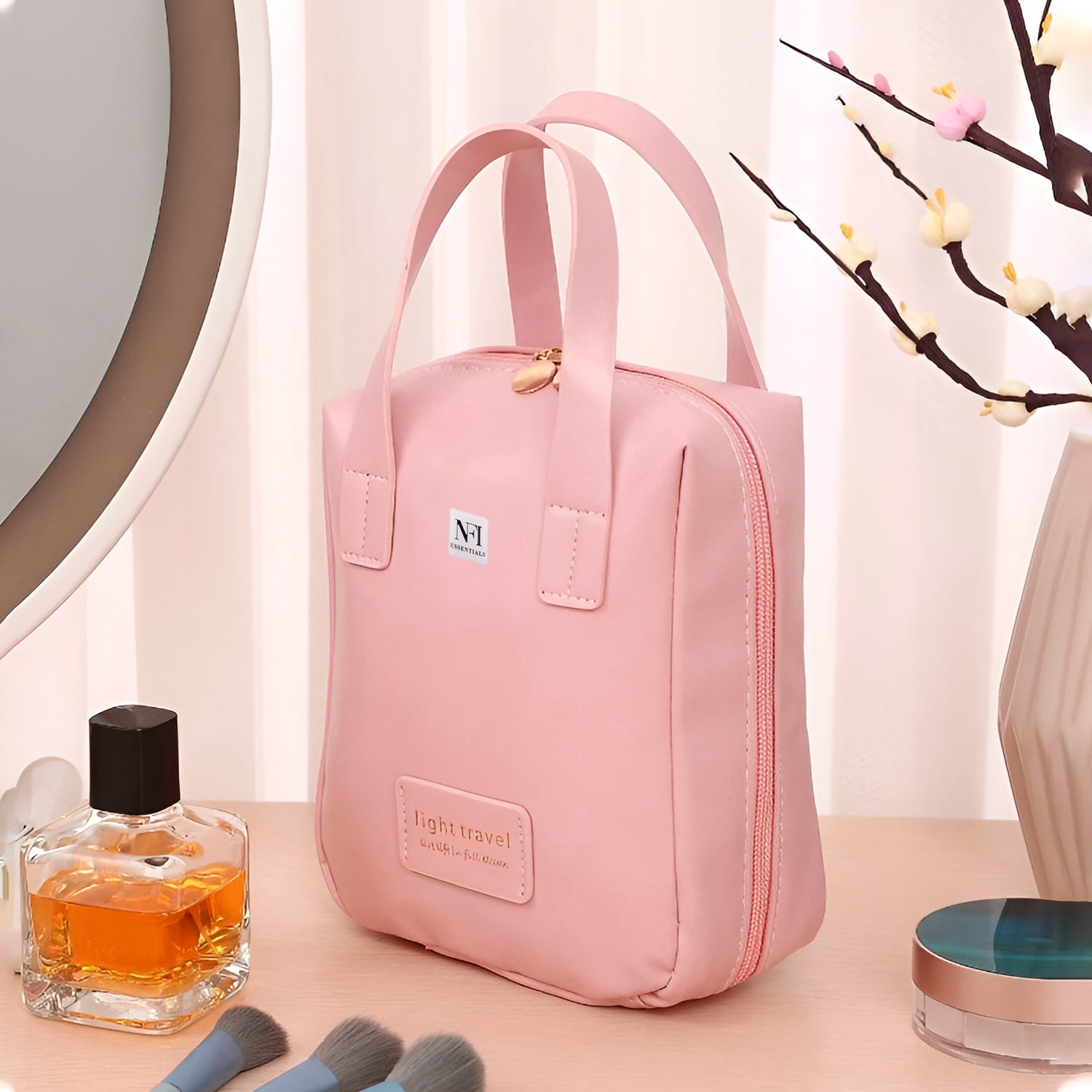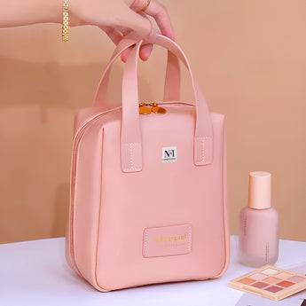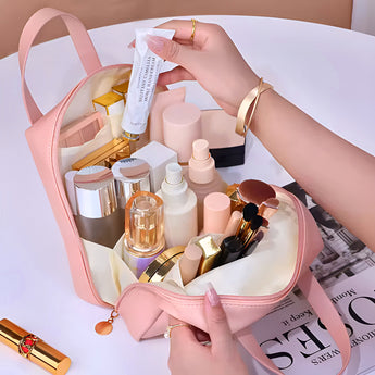 NFI essentials Portable Handheld Makeup Bag for Women with Compartments Large Capacity Travel Toiletry Cosmetic Bag with Handle Large Opening Makeup Pouch