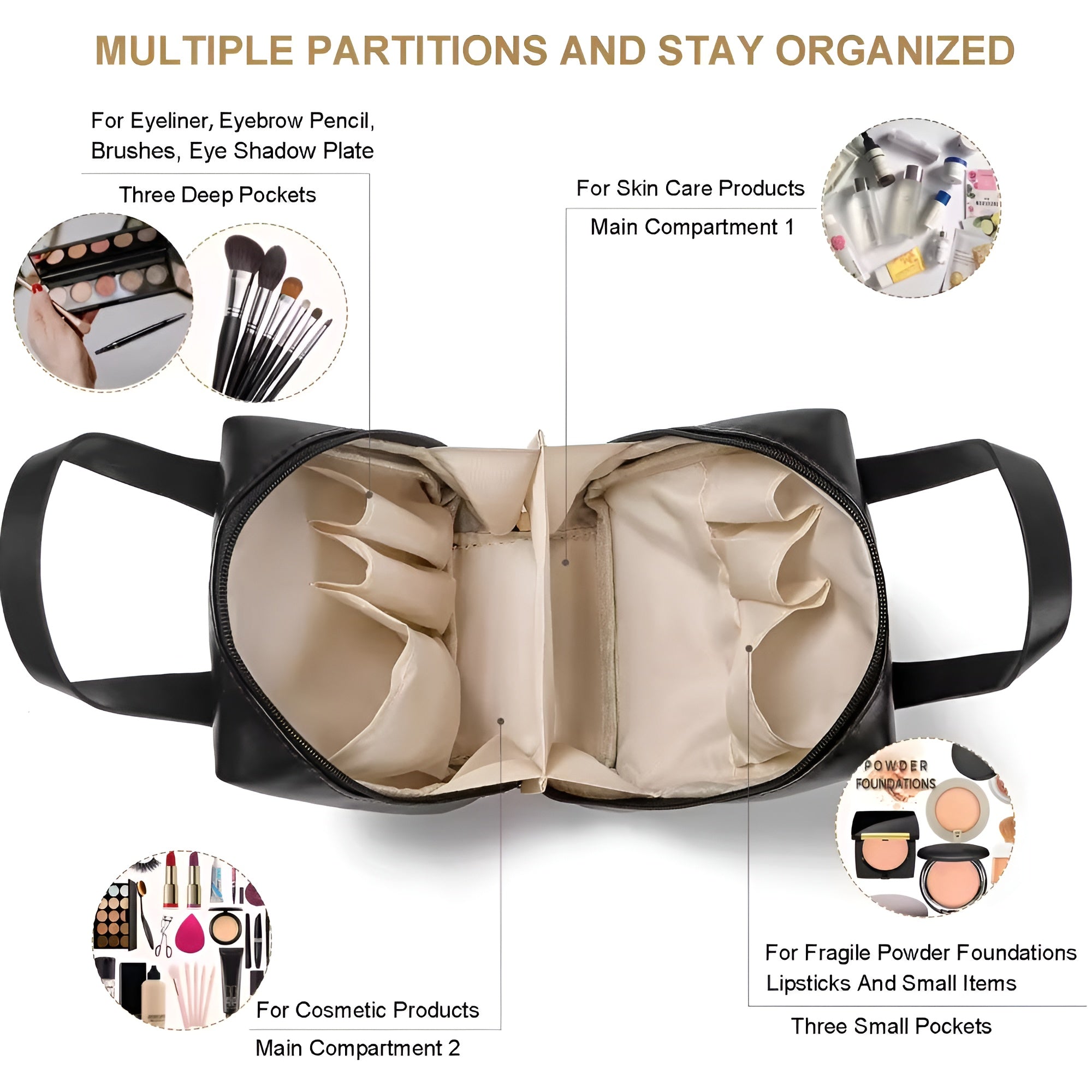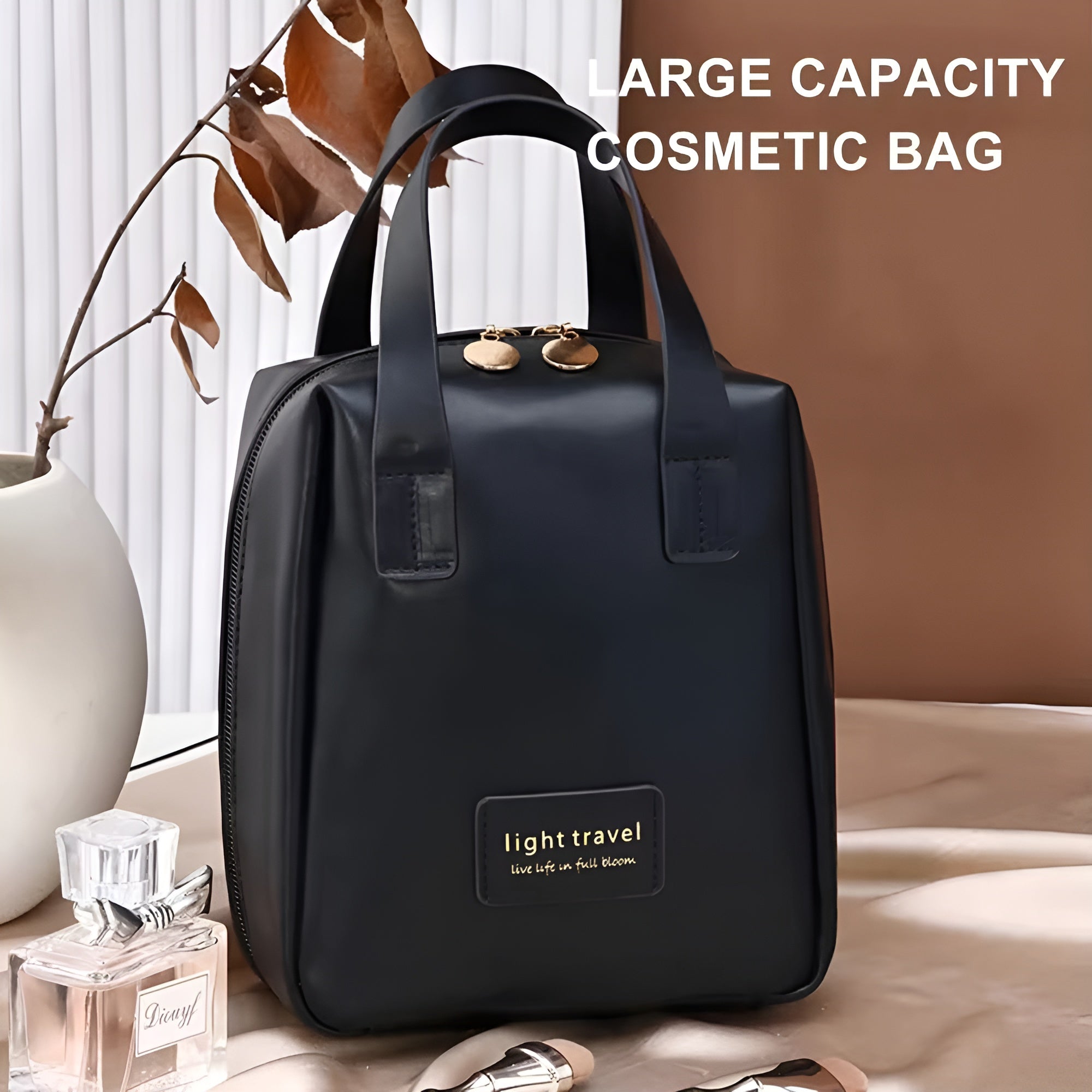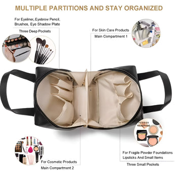 NFI essentials Portable Handheld Makeup Bag for Women with Compartments Large Capacity Travel Toiletry Cosmetic Bag with Handle Large Opening Makeup Pouch