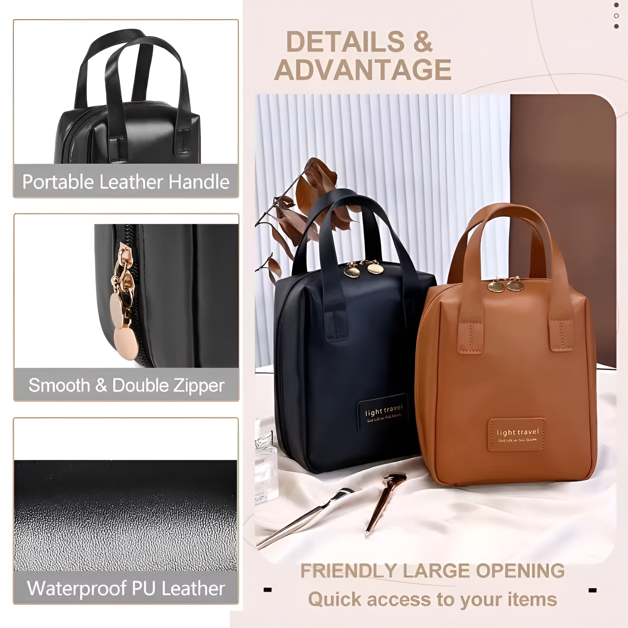 This cosmetic bag is made of high-quality leather, which is soft, lightweight, durable, waterproof and easy to clean. The travel makeup bag has precise wiring and can be reinforced and durable. With a simple, efficient design and colors that match your lifestyle, it keeps all your items organized, separated and within easy reach. This makeup bag cosmetic bag is lightweight, easy to carry, and has a large storage capacity, which is your best choice. There are multiple pockets inside the make up bag, which can be used to store and separate cosmetics. Dual zipper closures allow you to quickly secure your belongings when you're on the road. Don't forget to get some for your family and friends as this is a unique gift idea. The most convenient way to store beauty products at home or while traveling. Premium makeup bag pouch PU leather fabric easy to clean, special water-resistant surface to prevent internal products from getting wet. Not only can be used as a travel Cosmetic cases, the makeup bag also as a wash bag, a toiletry bag, suitable for all kinds of daily or travel use, and will bring great convenience to your life. Sturdy zipper with fine workmanship, metal zipper makes makeup bags smoother and easy to pull, the largest bag can hold your lipstick, lip gloss, makeup brush, eyeshadow and keep small items from falling out. Lightweight and easy to carry, with a large storage capacity, the cosmetic bag fits a variety of personal items ranging from jewelry and toiletries to electronic devices and glasses, making it the #1 solution when it comes to travel. This makeup bag combines elegance with functionality. It keeps your cosmetics organized on your makeup table and easily fits in your suitcase for travel. It can also be used as a wash bag or storage bag in daily life.
