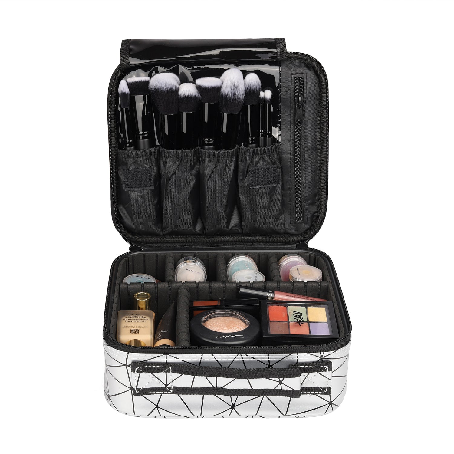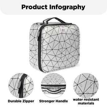 With Several compartments for different skin or makeup tools, Special design adjustable compartments, you can adjust as needed.This makeup case is perfect for holding cosmetics, mobile phone and washing products or other items,help to keep your tools is neat and tidy.Another medium storage bag are perfect for purse or everyday makeup bag. Super Lightweight Ideal for taking exactly what you need, anywhere, at any time. Wide handle for easy carry. Keeping your cosmetics safe and handy. Perfect for travel and home storage.