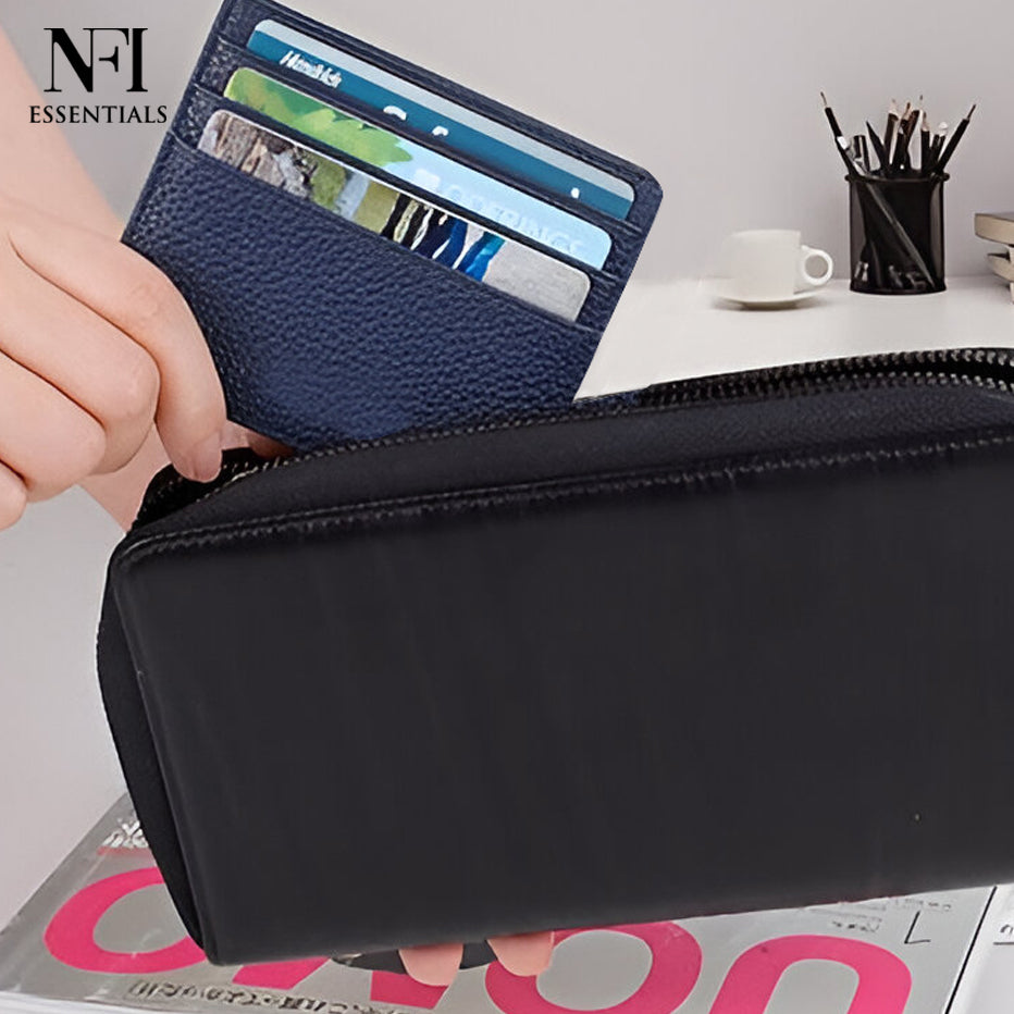 NFI essentials PU Leather 7 Slots Vertical Card Holder Credit Debit Card Holder Zipper Coin Purse for Men and Women Accordion Money Wallet Security Wallet (Copy)