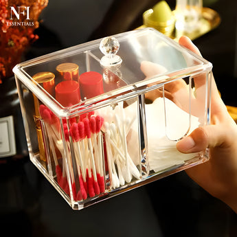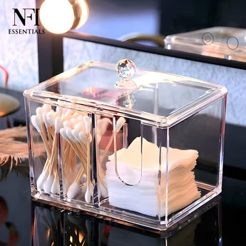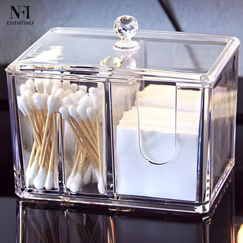NFI essentials Acrylic Clear Cotton Pad & Cosmetic Storage Box with Lid