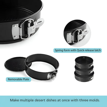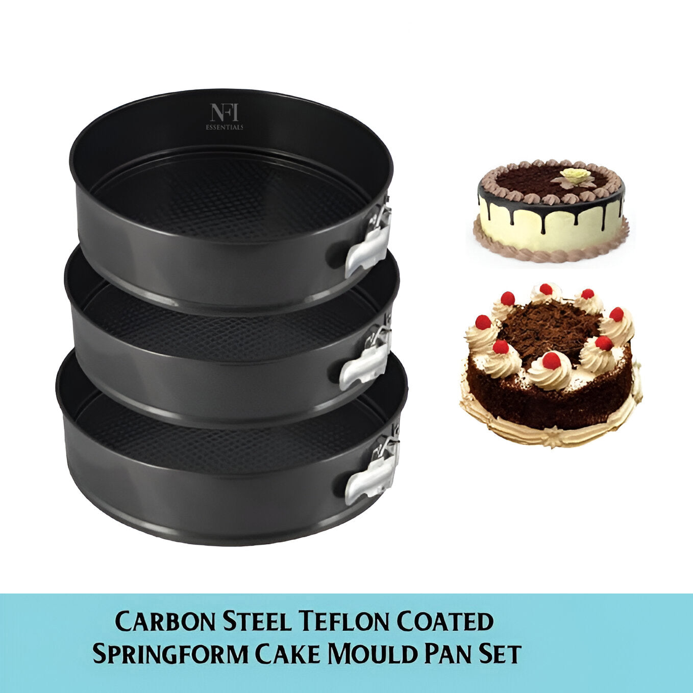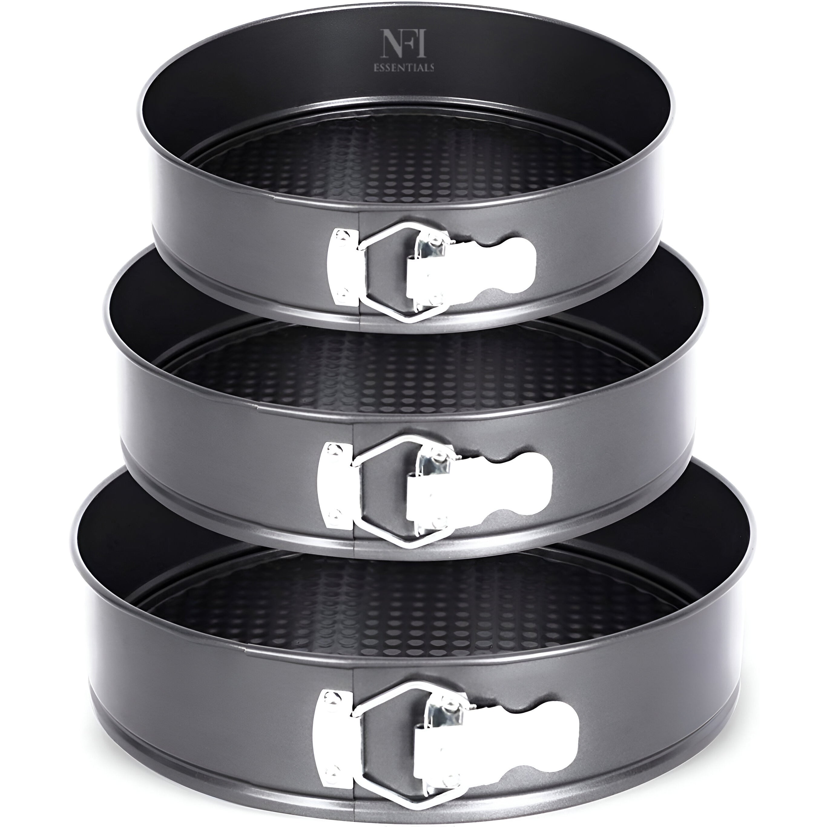 NFI Essentials Set of 3 Non-stick Cheesecake Pan, Leakproof Round Cake Pan Mould Baking Tray Lockable for Kitchen, Weddings, Parties, Family Occasions