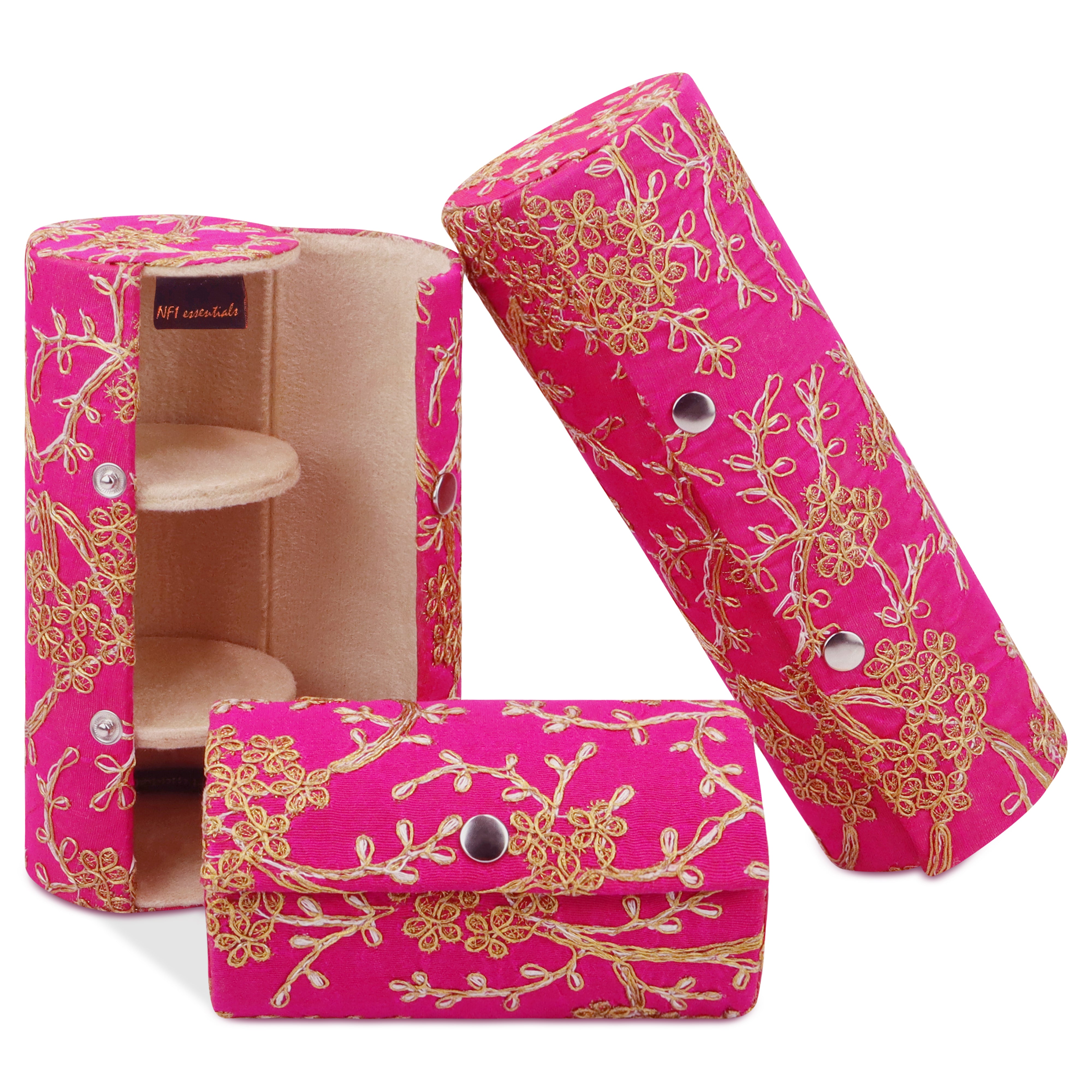 We presents completely new and handmade embroidery Bangle box with Adjustable and two Removable dividers and snap button closure. Which is perfect to store and carry your favourite Bangles, Bracelets, watches, rings, Jewellery, etc. systematically organized and safe and protect them from breakage. The beautiful Bangle box has Adjustable compartments to accommodate Bangles or Jewellery of different sizes and the Removable dividers make it easy to access and store your Jewellery away from dust. You can make this Bangle box as a wonderful gift for your relative, your friends and your close ones like your mother, wife, sister, friend, etc. You can gift her this stunning bangle box on Mother's Day, Anniversary, Raksha Bandhan, Birthday, Weddings, etc.