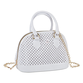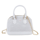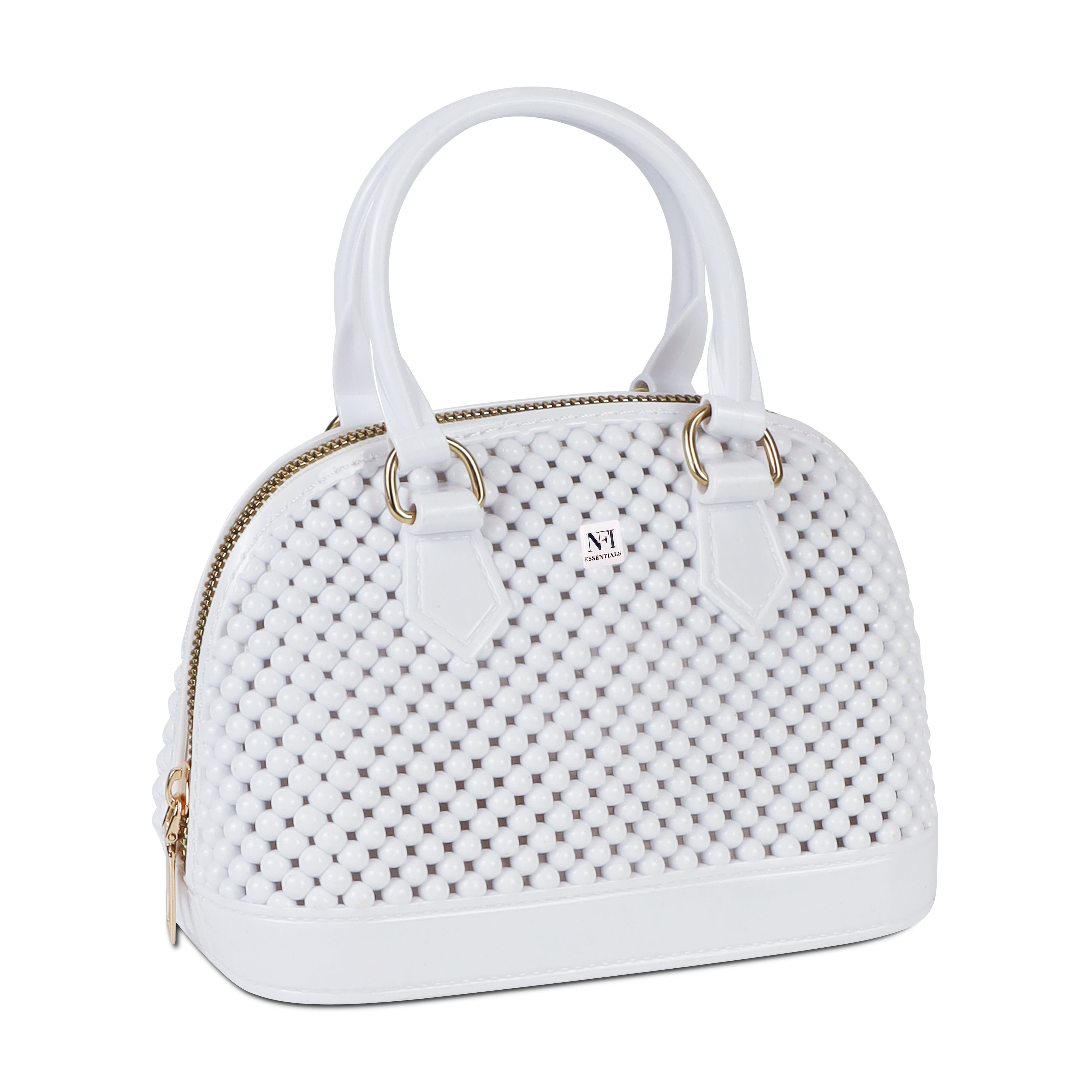 This sling bag combines elegance of a trendy shell shaped purse and the practicality of a crossbody design. Safely organize your daily items like cellphone, small cosmetics, lipsticks, wallet, keys, ID card, credit card, small snacks and other small personal belongings. Large capacity and interior design is very simple, you may find what you need immediately. Designed for women who prioritize style and functionality, this Crossbody Bag combines the elegance of a shell shaped purse with the practicality of a crossbody. Made from selected premium PVC fabric, durable, waterproof and wear resistant, easy to clean. Durable, unique, stylish and minimalist in design, it is perfect for any occasion and goes well with any outfit. With its shell shaped and comfortable & removable straps, the Crossbody Shoulder Bag provides a comfortable and fashionable solution. The spacious interior is big enough to fit your essentials, making it an ideal purse for daily activities or weekend outings. While the zippered closure ensures the security of your belongings. Designed with top handles, which can flip down and with a long removable chain strap, makes you can use it as tote bag, satchel bag, shoulder bag and crossbody purse, very practical. This Handbag, Cross body Bag seamlessly transitions from casual outings to formal events, making it a versatile addition to your wardrobe. It's elegant design complements various styles and occasions. Trendy shell shaped dome style, fresh & solid jelly color, convenient double zip-around design, fashion yet classic designer satchel purse, easy to match with your any wardrobe and outing look. This trendy shoulder bag is a ideal phone purse, which is perfect for daily, work, dating, travel, vacation, etc.