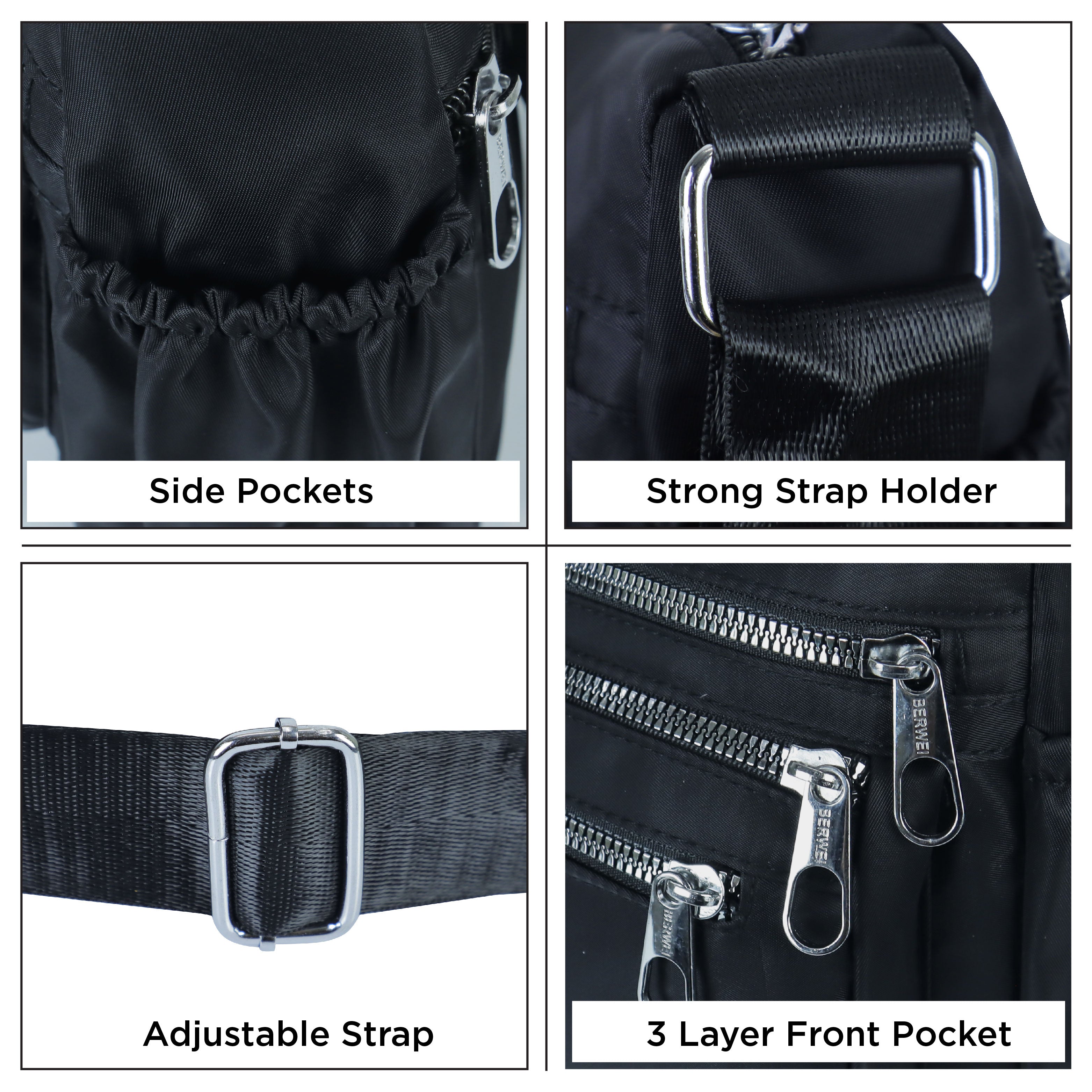 NFI essentials Crossbody Bag for Women, Multi-Layer Stylish Sling Bag for Girls, Nylon Shoulder Bag Purse for Ladies, Multi Pocket Travel Massenger Bag for Woman Latest
