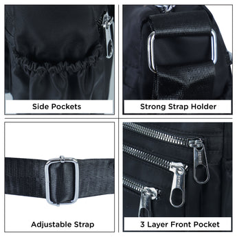 With a simple and classic look, this medium size nylon cross body bag is both practical and stylish, and will go well with a variety of outfits. Its lightweight construction and multi-compartment design makes it ideal for women travelling, business trips, holidays, beach, shopping, dating, work and more. This travel crossbody purse for women is made of nylon material and polyester lining, which is stylish, lightweight, durable, waterproof and machine washable. The classic zipper closure is smooth and free to open & close. This nylon material purse is easy to care for wipe clean or machine wash. It is lightweight and compact for travel and everyday use. This messenger bag features a multi-pocket design with 3 front zipper pockets and 1 spacious main pocket, 2 open inner pockets, 1 zipper private pocket, 2 elasticated side pockets and 1 zipper back pocket. Plenty of space enough to hold your mobile phone, wallet, folded umbrella, diaries, glasses, cosmetics, keys, other daily essentials, etc. This womens nylon sling bag comes with an adjustable shoulder strap that can be adjusted in length according to your height, use it as a crossbody bag, shoulder bag, handbag, satchel, shopping bag, travelling bags, weekend bag, ideal for work . It allows for comfortable all-day wear whether you're navigating through the city or enjoying a day out. Our crossbody purse for women can meet your various needs, with adjustable shoulder strap design, it can be used as a crossbody bag, shoulder bag, messenger bag, travel bag with a variety of storage options and organization features. It's perfect for any occasions, whether you're working, shopping or traveling and daily use.