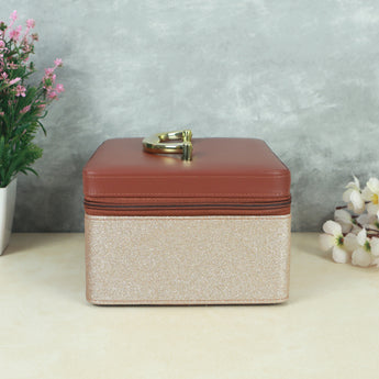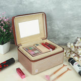 Stay stylishly organized with this elegant double-layer makeup and jewellery box. Made from durable, water-resistant polyurethane and lined with soft velvet, it’s lightweight, easy to clean, and perfect for both home and travel. Featuring a built-in mirror, this spacious organizer keeps your beauty essentials neatly in place. Ideal for makeup artists and beginners alike, it’s the perfect blend of fashion and function.lightweight, and easy to carry wherever you go. Whether you're heading on a weekend getaway or a long vacation, it keeps your essentials beautifully organized and within reach. It also makes a thoughtful and stylish gift for any occasion—Valentine's Day, Mother’s Day, birthdays, weddings, anniversaries, Diwali, Christmas.